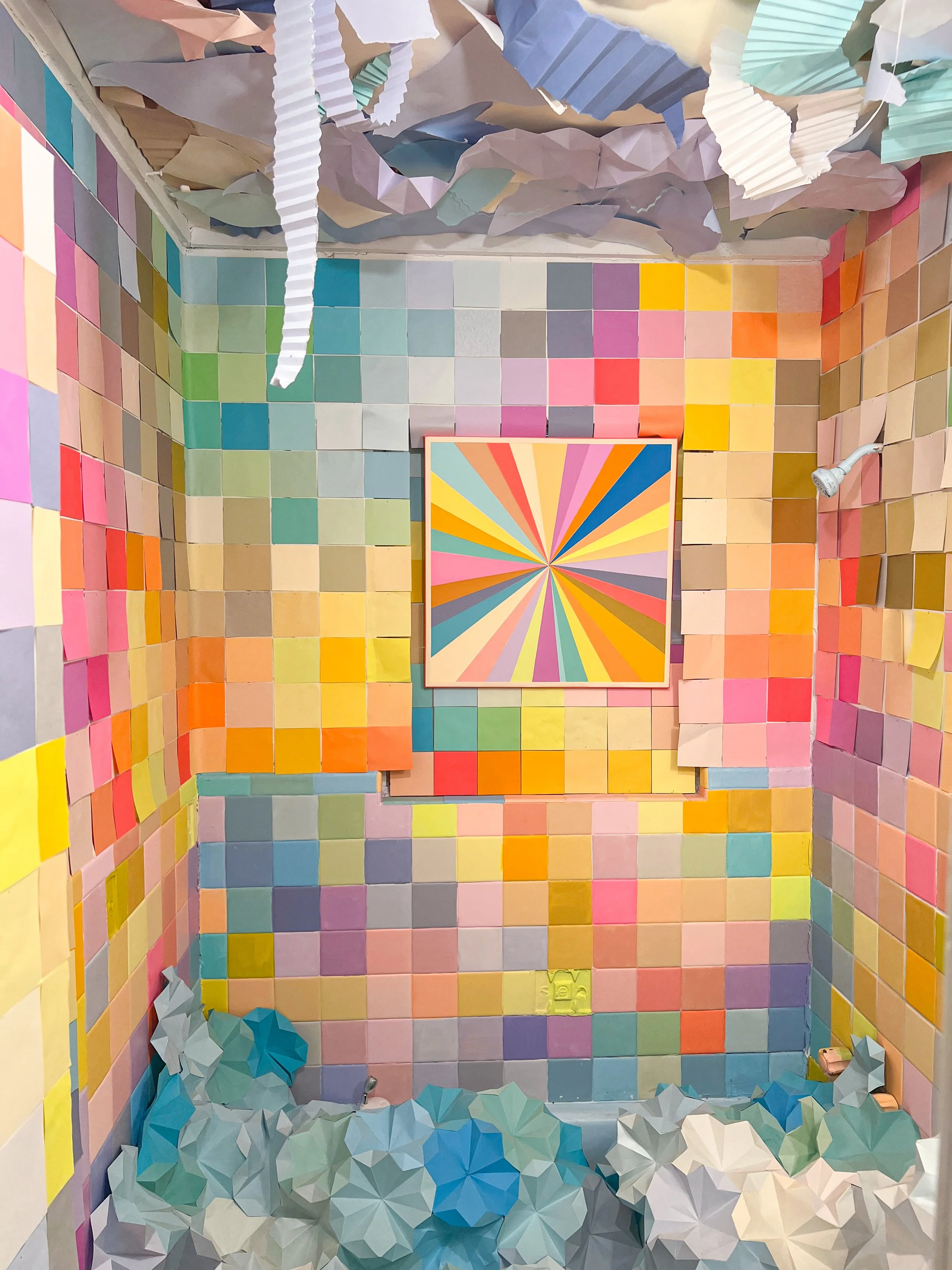 We love creating giant colorful installations! Immersive pieces for people to explore and experience, giant art on a giant wall in your home, or even a backdrop an event.